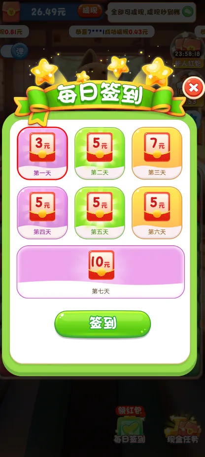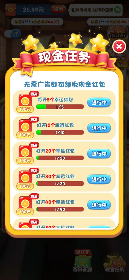 1、幸运红包系统:游戏内置的红包奖励机制允许玩家通过游戏内的优异表现赚取红包,这些红包支持按特定比例提现,为玩家带来实际收益。