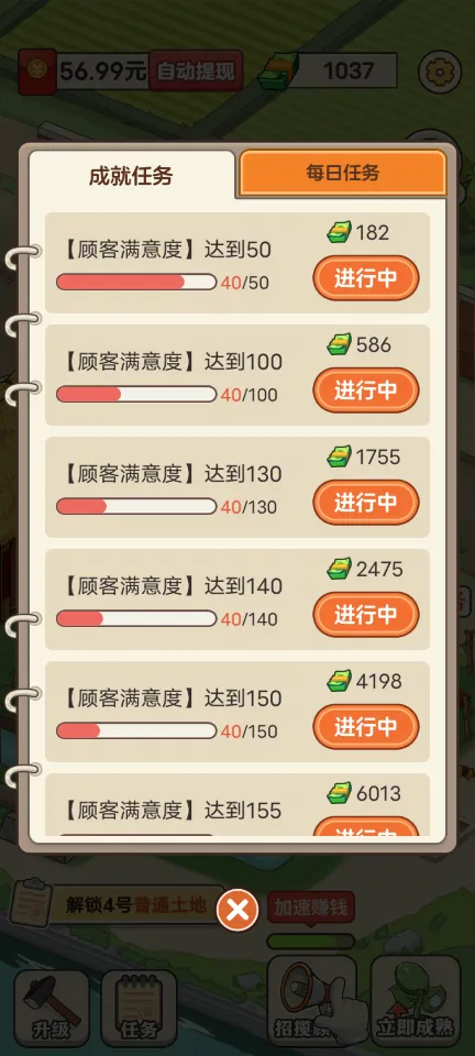 3、设施升级:使用游戏币升级菜地、货架等设施,提高生产效率和服务质量,增加顾客满意度。