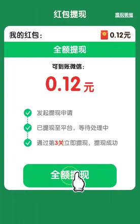 现金奖励:每次成功消除方块后,玩家可以获得一定数额的现金奖励,积累到一定程度即可提现至微信账户。
