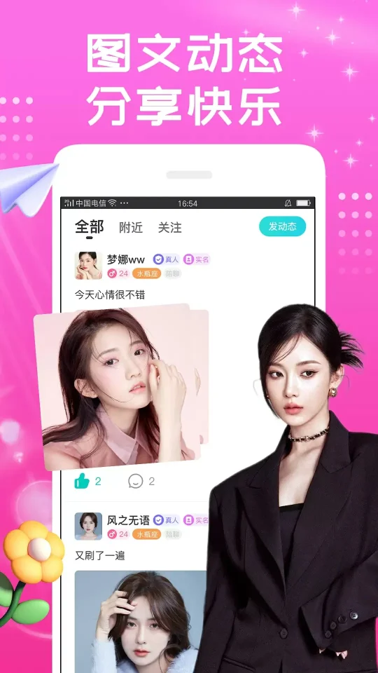 个人动态:用户可以通过发布图文信息来记录和分享自己的日常生活,增加与其他用户的交流机会,让沟通更加丰富多彩。