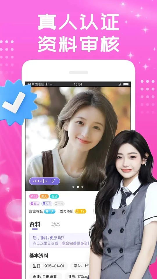 真人认证:为了保障平台的安全性和真实性,同城花聊提供了严格的真人认证机制,所有用户资料均需经过审核,确保每位用户的真实性。