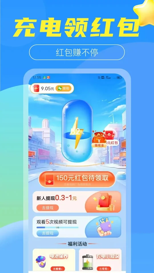 - 完成日常任务(如充电、邀请好友等)即可获得红包奖励。