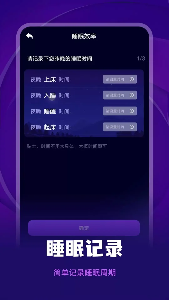 简单直观地输入您的入睡时间、醒来时间和睡眠时长。