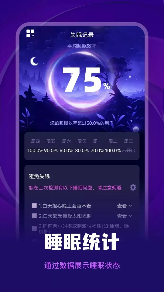 通过累积数据,帮助用户识别导致失眠的因素,并评估采取措施的有效性。