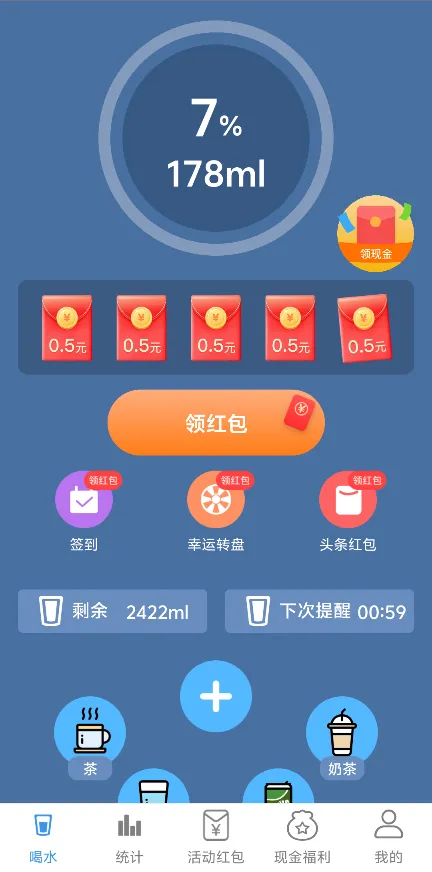 温馨可爱的界面设计:采用温暖柔和的颜色搭配和人性化的设计理念,营造出愉悦的用户体验,让喝水成为一种享受。
