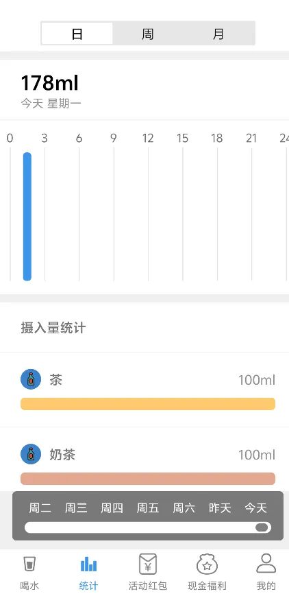 趋势统计与分析:以图表形式展示用户的饮水历史,通过日历视图或趋势图直观地呈现每日饮水情况,便于用户理解和调整自己的饮水计划。