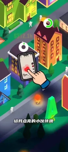 1、游戏的核心玩法之一是通过控制灯泡小人去点亮城市中的黑暗建筑,玩家花费一枚金币,就会有一个灯泡小人出现并走进未被点亮的房间。