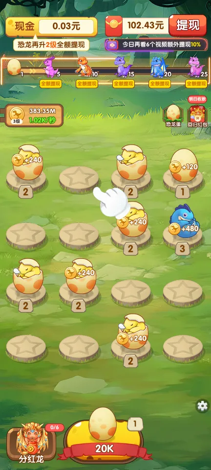 合成升级:将两只等级相同的恐龙进行合成,以解锁更高级别的恐龙。