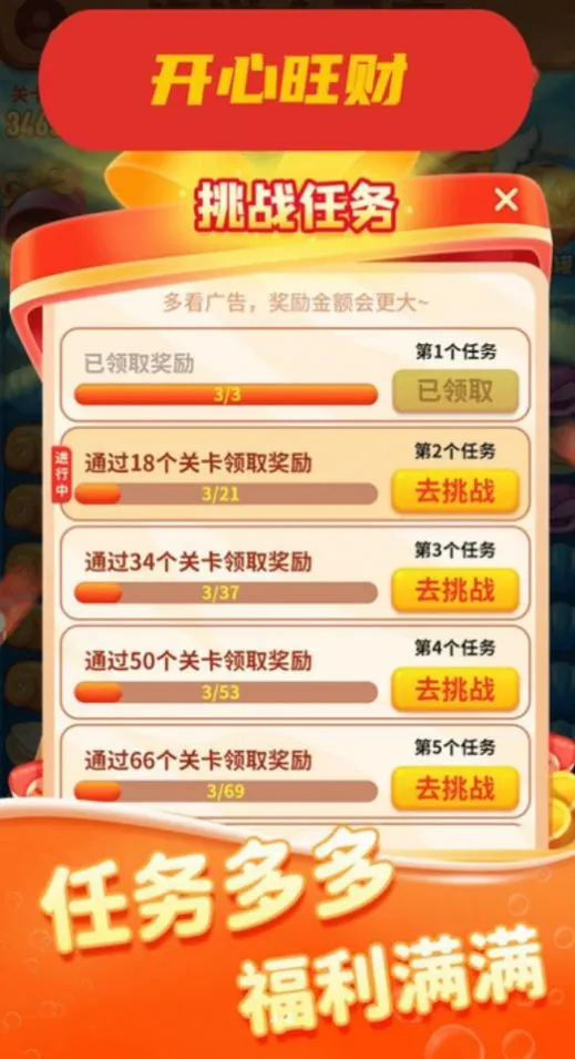 1、丰富的关卡:提供了多种不同的关卡,玩家需要根据不同的难度和风格进行策略性的消除,解锁更多级别的奖励,开启你的赚钱之旅。