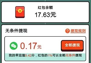 红包奖励是按百分比兑换的,可惜奖励小了点。