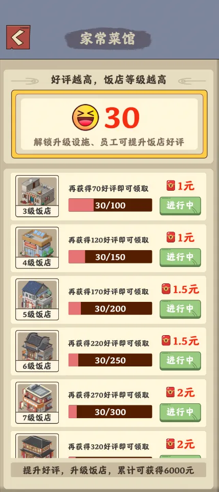 2、好评系统:饭店的好评度是衡量成功的关键指标,直接影响饭店等级。提升好评等级不仅能吸引更多顾客,还能解锁更多高级功能。