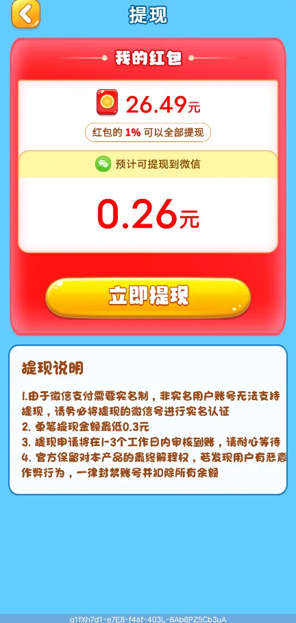 3、低门槛提现:游戏设置了较低的提现门槛,仅需0.3元即可申请提现,降低了玩家获取实物奖励的难度,提升了游戏的吸引力。