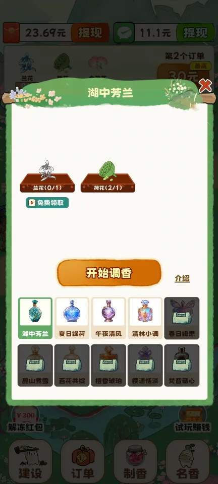 4、订单系统与红包奖励:游戏中设有订单系统,玩家需根据市场需求,完成订单即可获得红包奖励。特别是收集并制作出游戏设定的所有名香,更有丰厚的红包大奖等待着你。