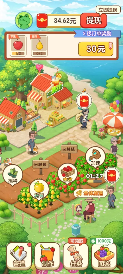 3、红包奖励:达成特定里程碑,如图鉴收集度、果园等级等,可以获得红包奖励,增加游戏的激励性。