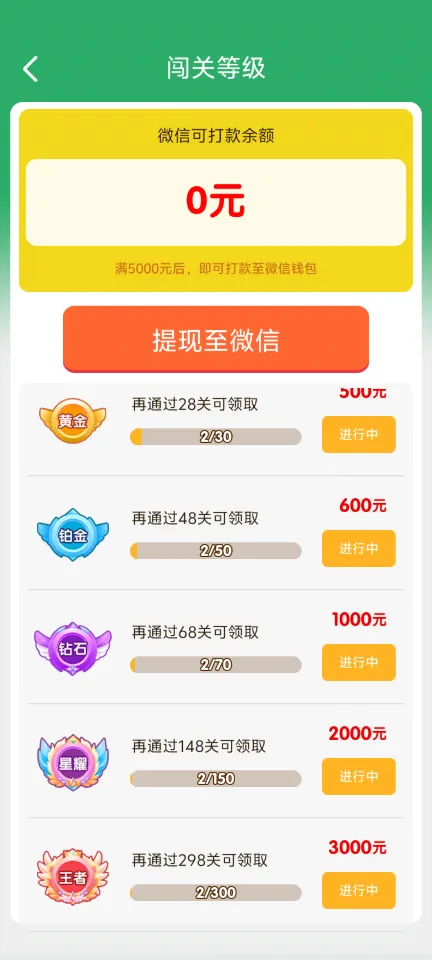 2、等级系统:根据通过的关卡数量,玩家可以提升自己的等级,直至达到“王者”。
