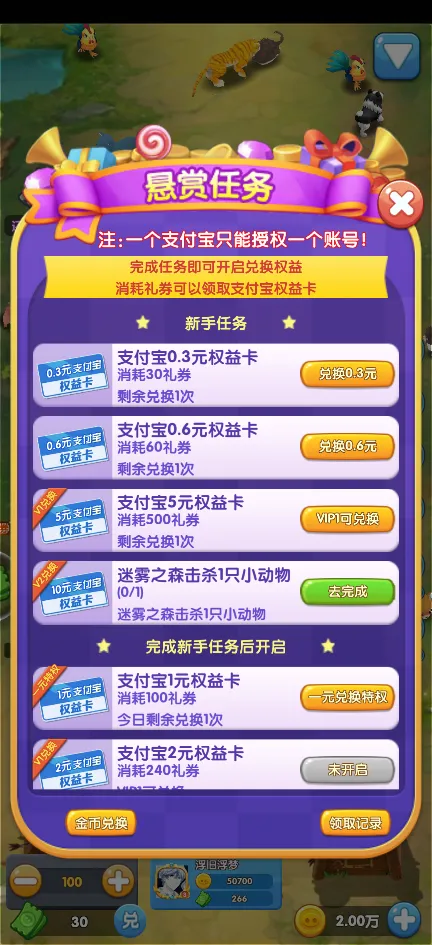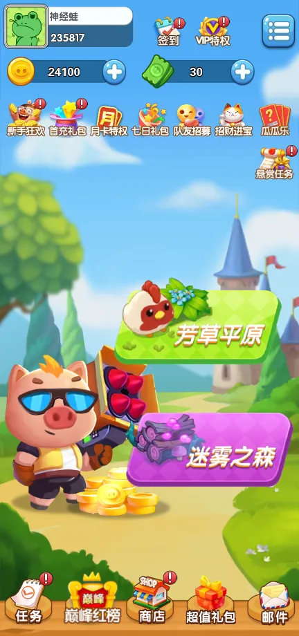任务系统:完成特定任务可以获得奖励,帮助提升小猪的能力。