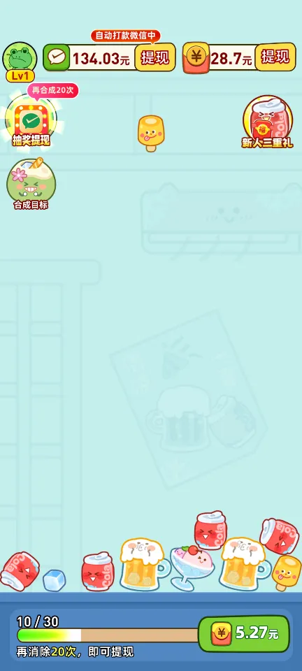 1. 基础玩法:通过拖动屏幕上的相同消暑物品(如冰淇淋、西瓜、凉茶等),使它们合并成更高等级的物品。