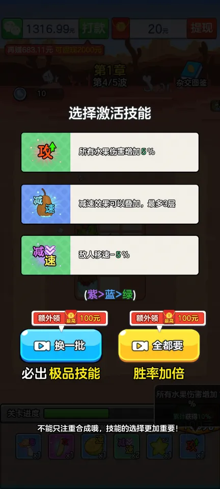 多样化水果塔:从基础的苹果到高级的榴莲,每种水果都拥有独特的攻击方式和特殊技能。