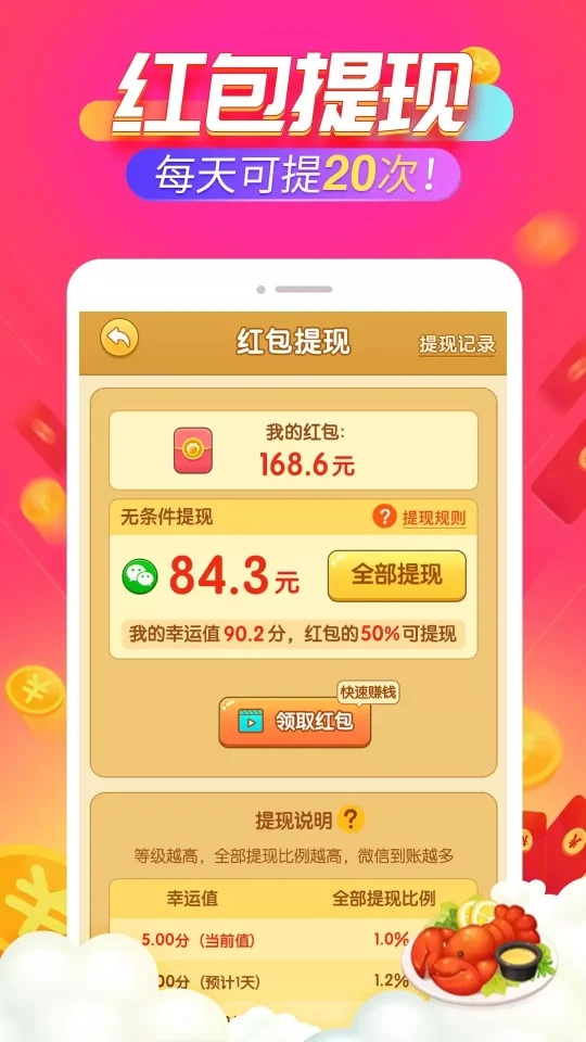 轻松提现红包:游戏内获得的所有红包均可快速提现至微信,方便快捷。