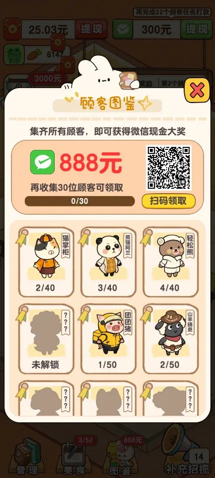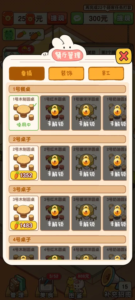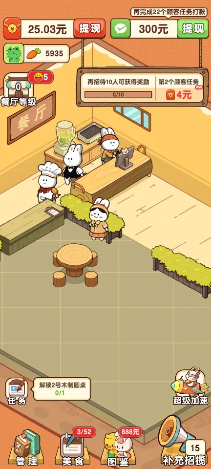 任务挑战:完成特定的任务目标,如在限定时间内服务一定数量的顾客或制作出指定的菜品组合,以获得额外的大额奖励,这些奖励可以帮助加速餐厅的成长。