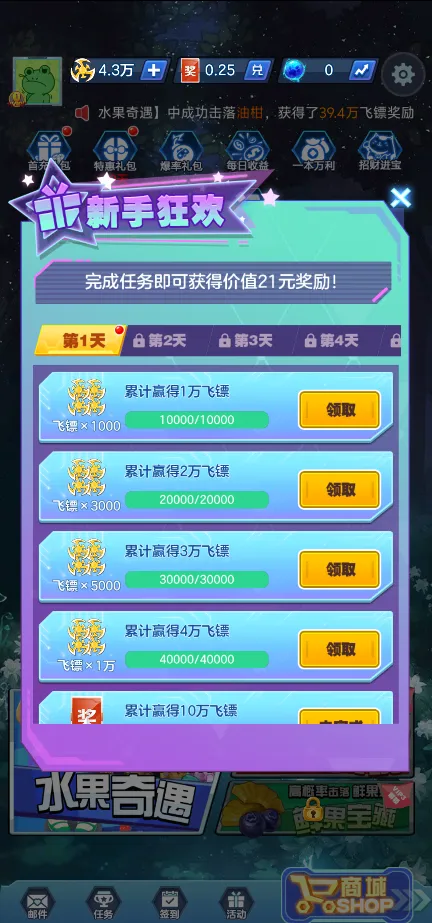 在《果之乐》中,玩家的主要目标是操控选定的战机,在空中执行一系列的任务,包括但不限于摧毁来袭的敌机、保护特定目标以及探索隐藏区域。游戏操作简便,支持单手操作,玩家只需轻轻滑动屏幕就能实现灵活的躲避和精准的攻击。随着游戏进程的发展,玩家可以解锁更多种类的战机,并且利用获得的红包兑换更强大的武器装备或特殊技能,提升战斗力。
