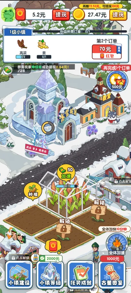 《雪乡小镇》是一款充满北国特色的模拟经营游戏。在这个游戏中,玩家将扮演一位小镇经营者,从耕种土地开始,经历播种、照料作物到收获的过程,再通过完成各种订单赚取金币和经验值。随着游戏进度的发展,玩家可以逐步解锁更多有趣的设施如滑雪场、酒吧以及钓鱼区等,为自己的小镇增添色彩,同时获取更加丰厚的奖励。这不仅是一次简单的农业经营活动,更是一段充满挑战与惊喜的成长之旅。