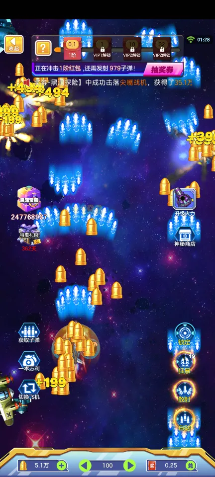 升级系统:利用在战斗中获得的经验值和金币,玩家可以对自己的飞船进行升级改造,包括速度、装甲、火力等方面的增强,使自己在面对更强大敌人时也能从容应对。
