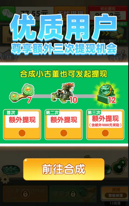 即时奖励:每一次成功的合成都会为玩家带来即时的奖励,这些奖励可以直接用于兑换现金红包或其他形式的回馈。值得注意的是,在游戏过程中累积的价值还可以选择提现,让玩家轻松赚取外快。
