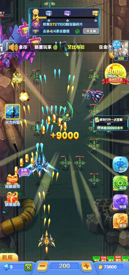 捕鱼游戏风格融合:借鉴了捕鱼类游戏的特点,比如通过连续命中同一个目标来累积连击数以获取更高分数;特定情况下释放超级武器清除一片区域内的所有敌人,增加了游戏策略性和趣味性。