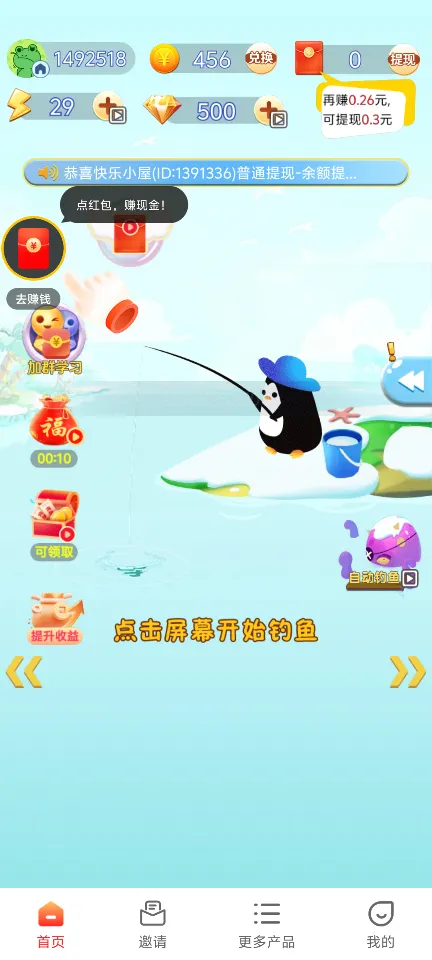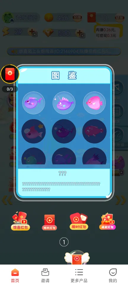 在《欢乐鱼场》里,玩家的主要任务是使用鱼竿进行钓鱼。每种鱼都有不同的价值,稀有度越高的鱼能带来更多的金币奖励。随着玩家不断积累金币,可以用来提升鱼竿的等级,解锁更高级别的水域,甚至购买特殊饵料以吸引更加珍贵的鱼类。此外,玩家还可以利用所获金币在游戏内的商店中兑换成真实的红包,实现娱乐与收益的双赢。