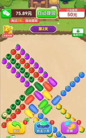 《幸福羊村》是一款以可爱的小羊为主角,通过匹配并吃掉相同颜色的蔬菜来闯关的休闲益智游戏。游戏画面色彩丰富、角色设计萌趣,不仅能够带给玩家轻松愉快的游戏体验,还能在解压的同时挑战自我,甚至有机会赢取红包奖励。