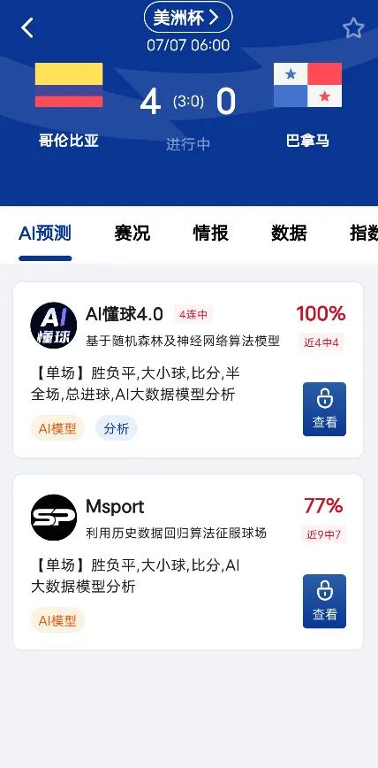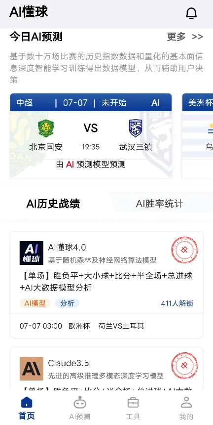 3、历史战绩查询:用户可以查看AI的历史预测记录,包括正确率统计,帮助评估预测的可靠性。