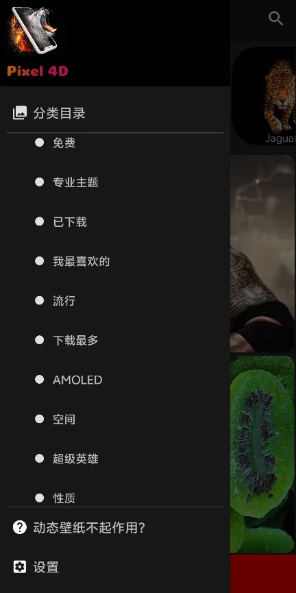“Pixel 4D”是一款创新的壁纸应用,它不仅提供传统的超清静态壁纸,还特别支持4D重力壁纸和动态壁纸。这些壁纸能够根据手机的姿态变化展示不同的视觉效果,为用户带来前所未有的互动体验。此外,该应用还贴心地提供了多种类别的壁纸,包括卡通充电画面等,确保用户在各种场景下都能找到合适的壁纸选择。