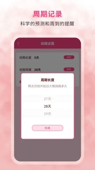 智能推算:基于用户的生理周期数据,应用能够智能计算并预测排卵期、安全期及月经期,为用户提供科学的避孕指导。