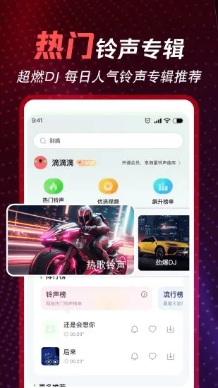 海量资源:提供广泛的铃声和视频来电秀选择,涵盖流行歌曲、电影原声、自然声音等不同风格的内容,满足各种用户的喜好。
