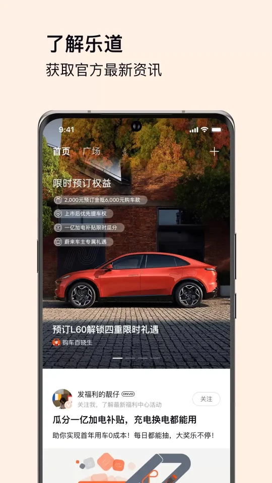 乐道App是蔚来汽车推出的专为家庭用户设计的智能电动汽车品牌专属应用程序,旨在通过一系列贴心服务和互动功能,提升用户的购车、用车体验,并促进社区内的交流与分享。该应用不仅涵盖了从选车到售后的全流程支持,还提供了丰富的社交互动元素,使用户能够更加深入地参与到乐道品牌的建设和成长中来。