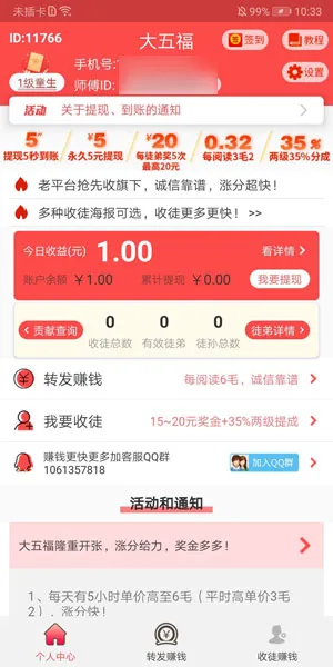 大五福是老平台抢先收旗下最新给力平台,注册送1元,每天有5个小时阅读单价高达6毛,其他时间3毛2每日阅读,永久5元起提现。诚信靠谱涨分快,分享每日热点,好看又赚零钱。还可以自己上传文章,更好的吸引点击阅读。