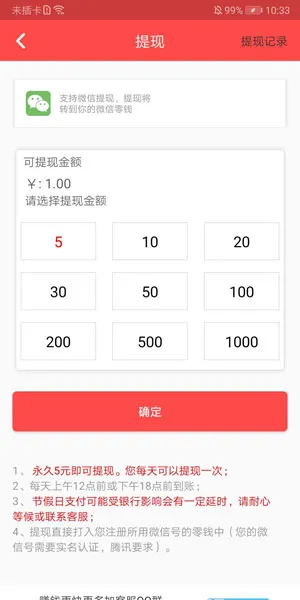 提现到账时间当天9点-12点提现的,当天下午3点左右到账,当天下午12点-15点提现,当天下午18点左右到账,当天下午15点以后提现,第二天中午12点左右到账。节假日照常打款。