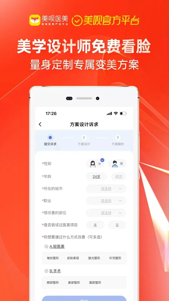 个性化美学设计:配备350+医美顾问兼美学设计师,提供24小时在线私人订制整形方案。