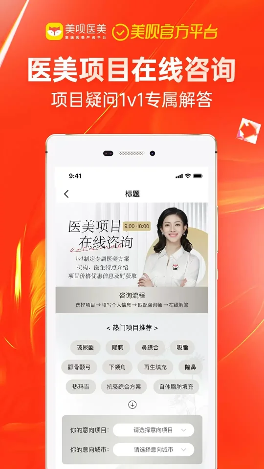 美呗医美是一款专注于美容微整形领域的高端服务平台,致力于通过科技和服务提升人们的生活质量。它为用户提供从咨询到术后护理的全方位服务,帮助用户实现美丽愿望。