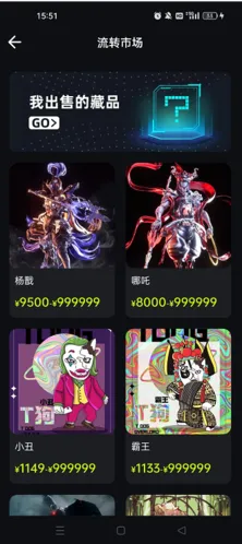 3、进入流转市场,你可以选择自己喜欢的数字藏品进行购买。