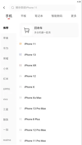 1、打开转转App官方版,在转转回收内点击手机回收;