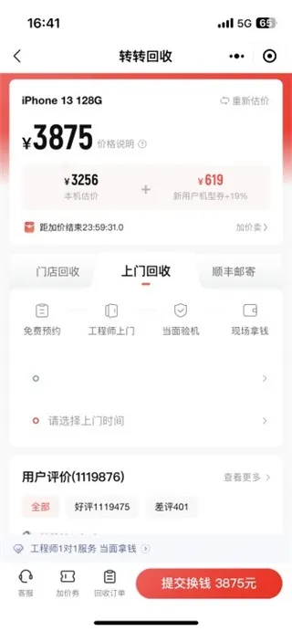 5、获取精准估价后,选择上门回收,提交换钱即可。