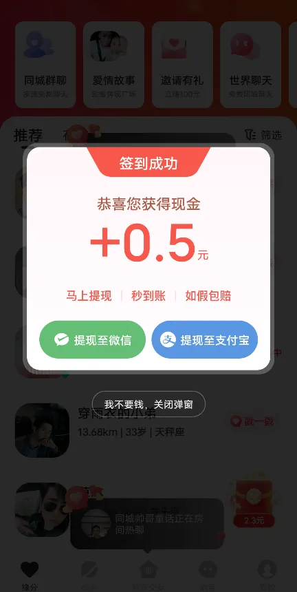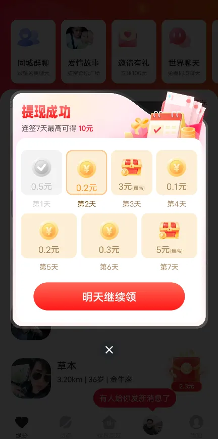 1. 女性用户聊天赚钱:平台设计了一种机制,让女性用户通过与男性用户聊天来获得收入。女性用户收到回复即可赚取收益,鼓励她们主动与他人交流。