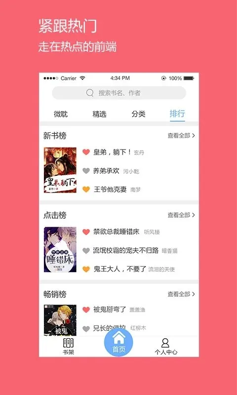 2.你可以在新书排行榜、点击榜和畅销书排行榜上查看小说排行榜,并在不踩坑的情况下选择书籍。