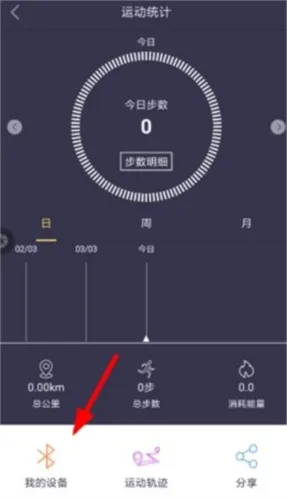 1、打开已下载的软件,进入“运动步数”页面,点击“手环”按钮。