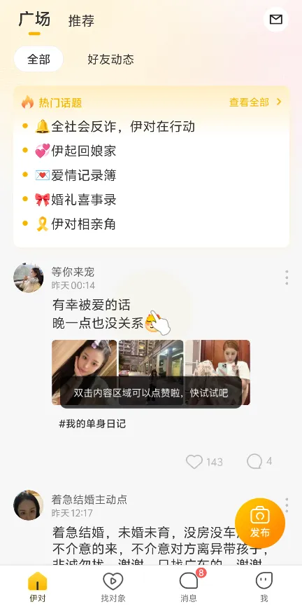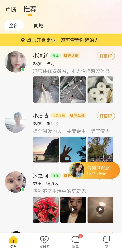 《伊对》是一款主打真人社交的交友平台,致力于为用户提供真实可靠的交友体验。通过实名认证,用户可以获得更多的聊天机会和流量支持,增加收入的可能性。该应用鼓励用户上传真实头像,并完善个人资料及动态以吸引更多的关注者。