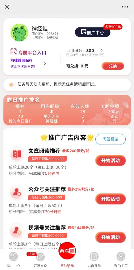 文章阅读:用户可通过浏览平台提供的文章获取积分。