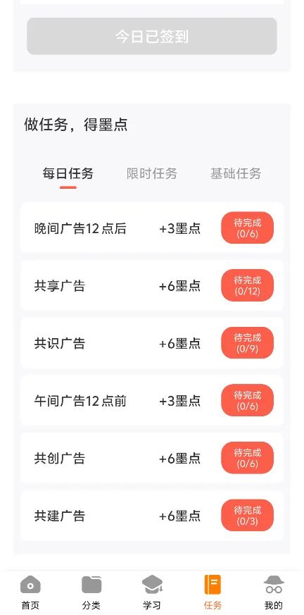广告任务: 用户可通过完成广告任务来获得额外的墨点奖励,进一步增加收益。