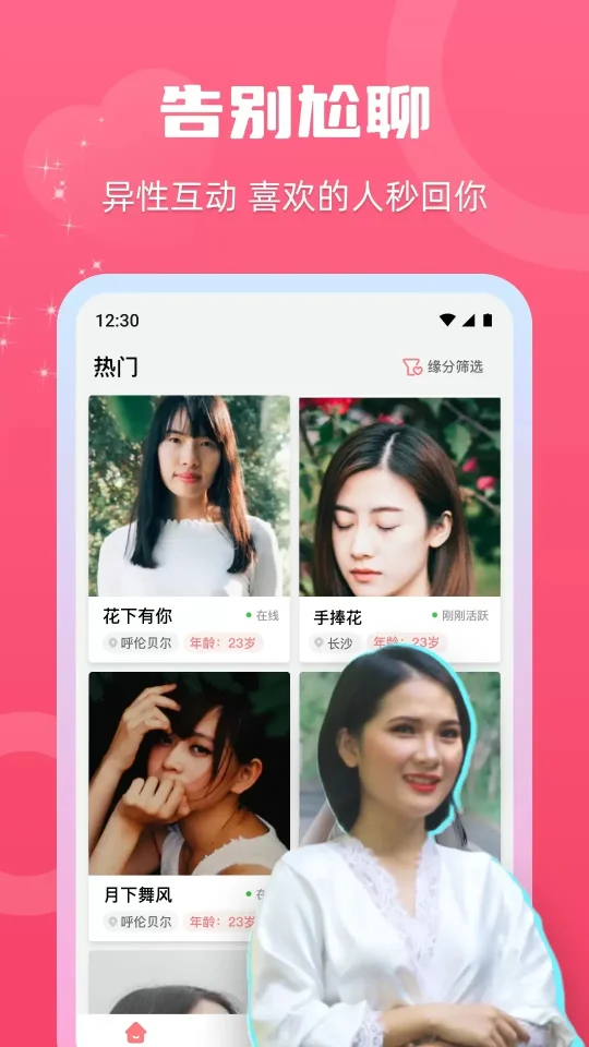 匹配推荐:根据用户的兴趣爱好和个性特点,智能推荐合适的交友对象。